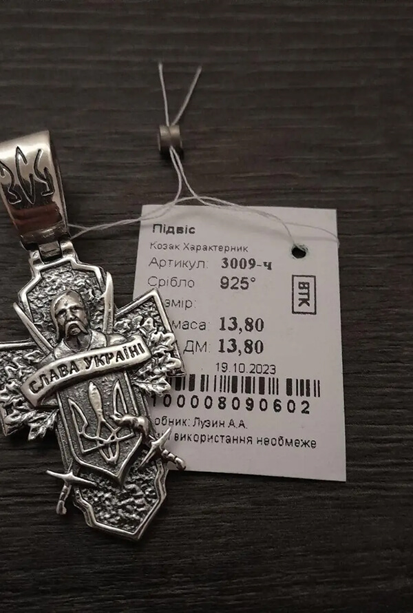 Замовлення прийшло швидко, все якісно запаковано, прикраса як на фото. Подарунок для чоловіка сподобався, дякую.