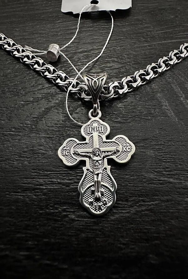 Срібний ланцюжок бісмарк і срібний православний хрестик 925 проби