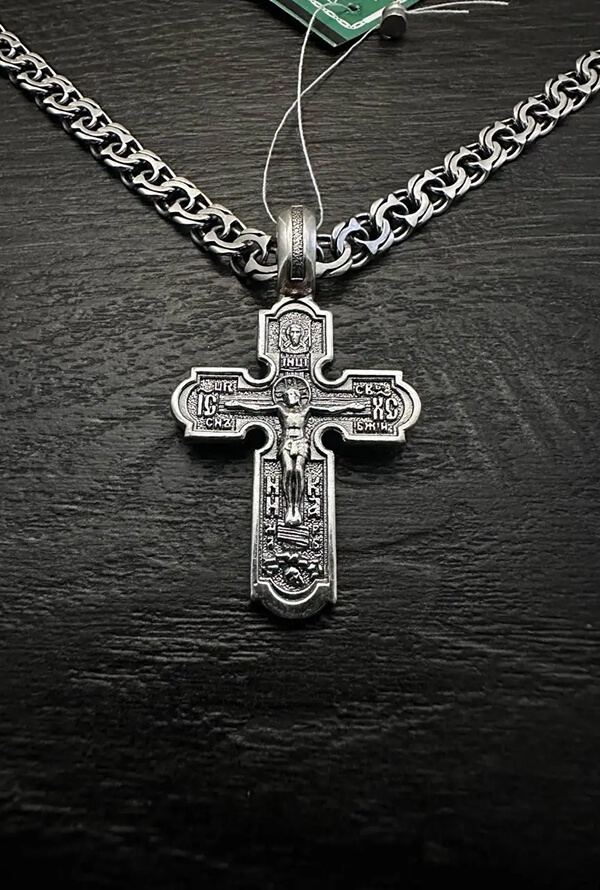 Срібний ланцюжок бісмарк і срібний православний хрестик 925 проби