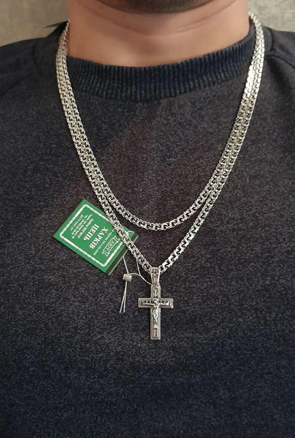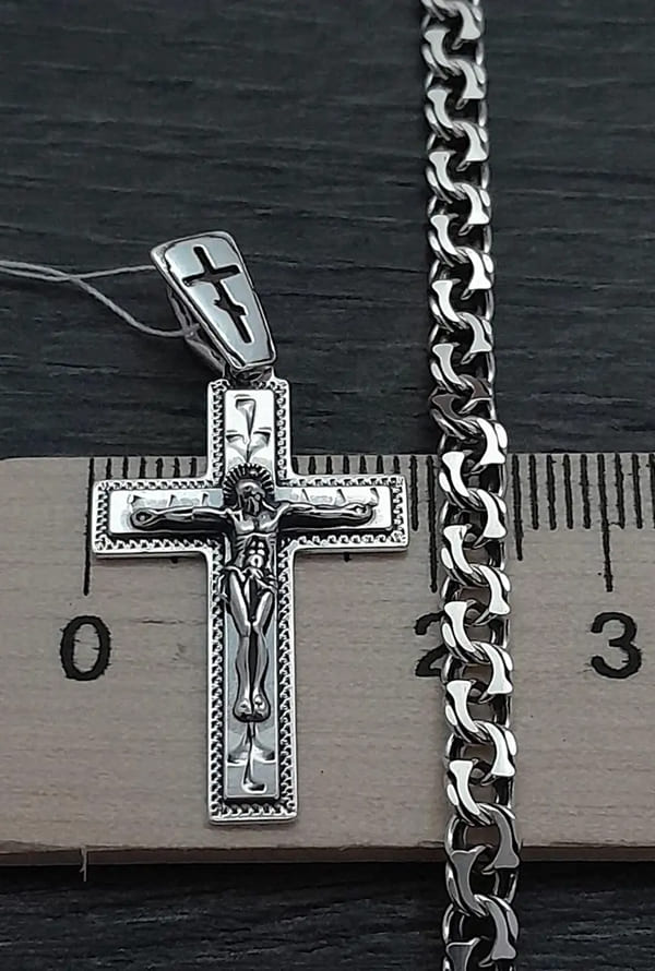 Срібний православний хрестик та срібний ланцюжок бісмарк Козацький 925 проби з чорнінням