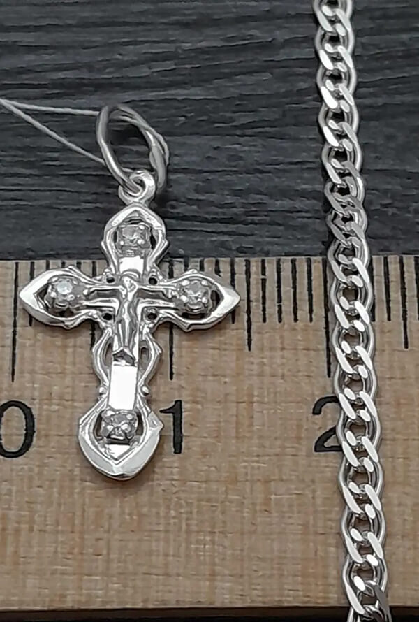 Срібний жіночий ланцюжок та хрестик 925 проби